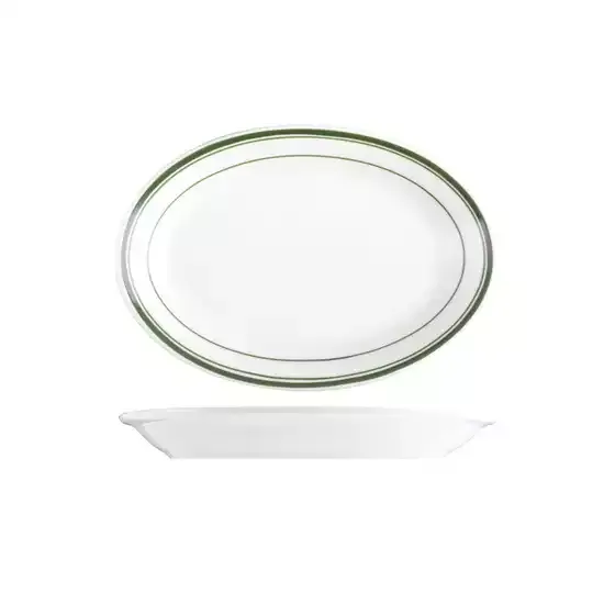 With its creamy white body and deep green banding, Green Bay is a vintage throwback with a modern approach. The double-line detail adds retro character, offering a sense of nostalgia to the dining experience. Green Bay is made from fully vitrified ceramic with enhanced chip resistance.