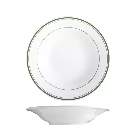 With its creamy white body and deep green banding, Green Bay is a vintage throwback with a modern approach. The double-line detail adds retro character, offering a sense of nostalgia to the dining experience. Green Bay is made from fully vitrified ceramic with enhanced chip resistance.