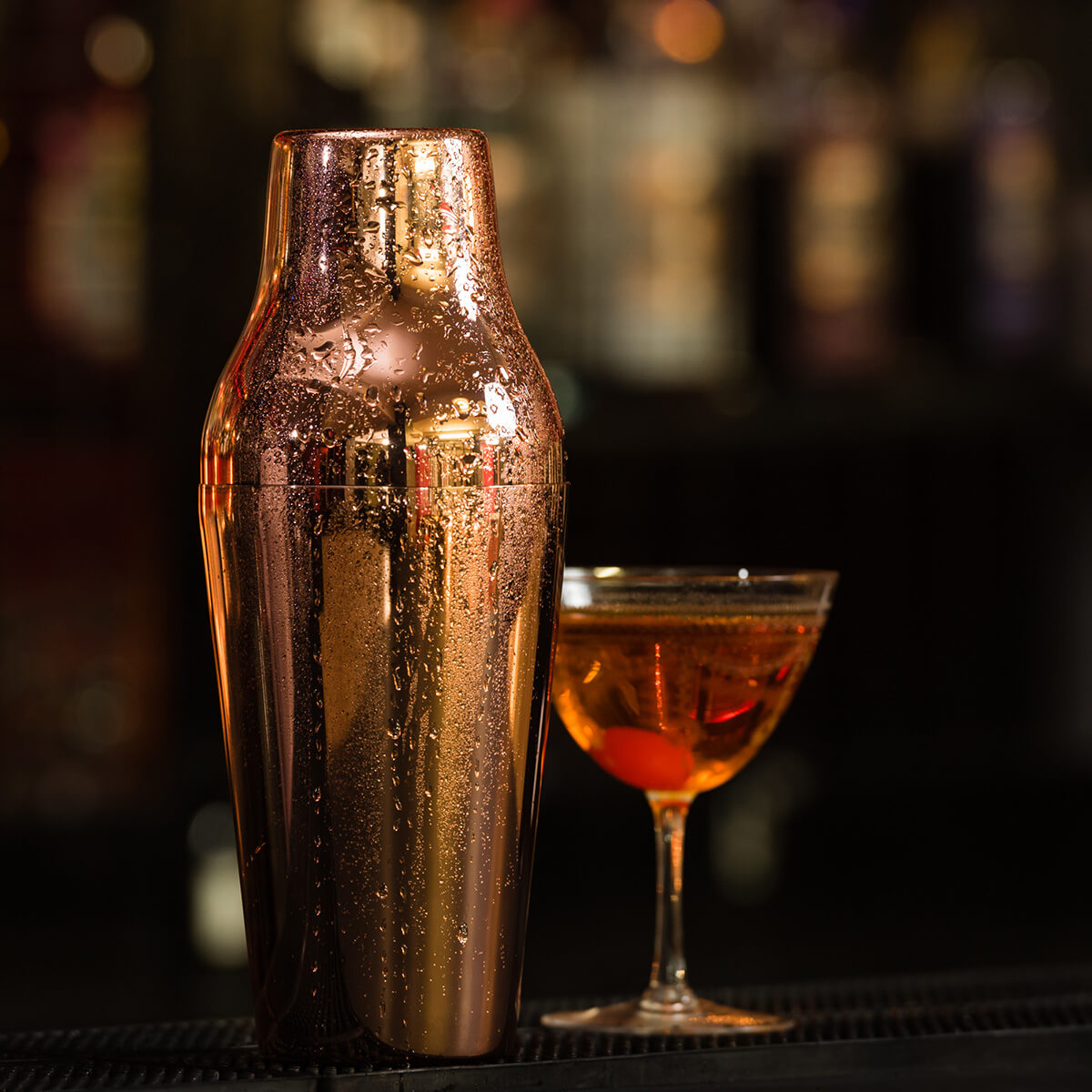 The French (or Parisian) shaker has been used as far back as 1878. It is a great intermediate option and falls between the Cobbler and Boston shaker for ease of use. In one sense, the French Shaker is similar to a Boston shaker, as they come in two parts and require a separate strainer. In another, they resemble the Cobbler, as they share a similar silhouette and tightly fitting lid. Appealingly on-trend in appearance and fully functional, this is a great shaker for those who already have cocktail making accessories.