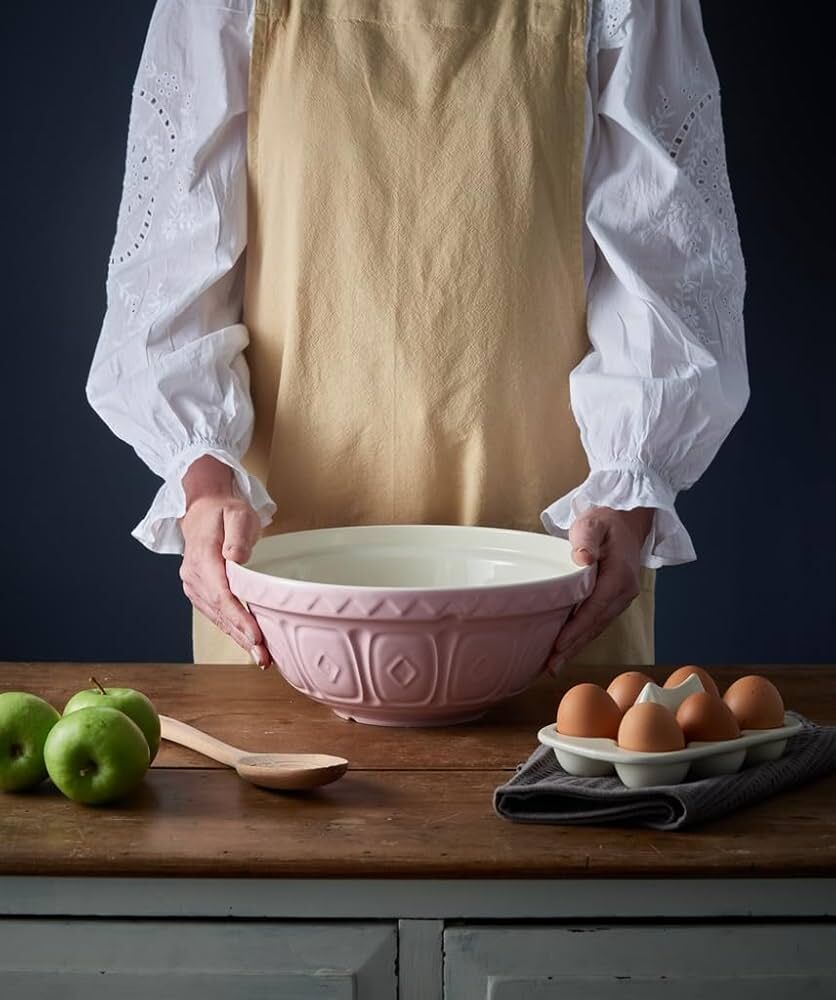 The Mason Cash Mixing Bowls have been in kitchens for generations, since 1901. The mixing bowl has been designed to be light enough to hold in one arm while mixing, but sturdy enough when using on the countertop. Perfect for home and professional bakers, the distinct exterior pattern and rim help to grip and tip the bowl.